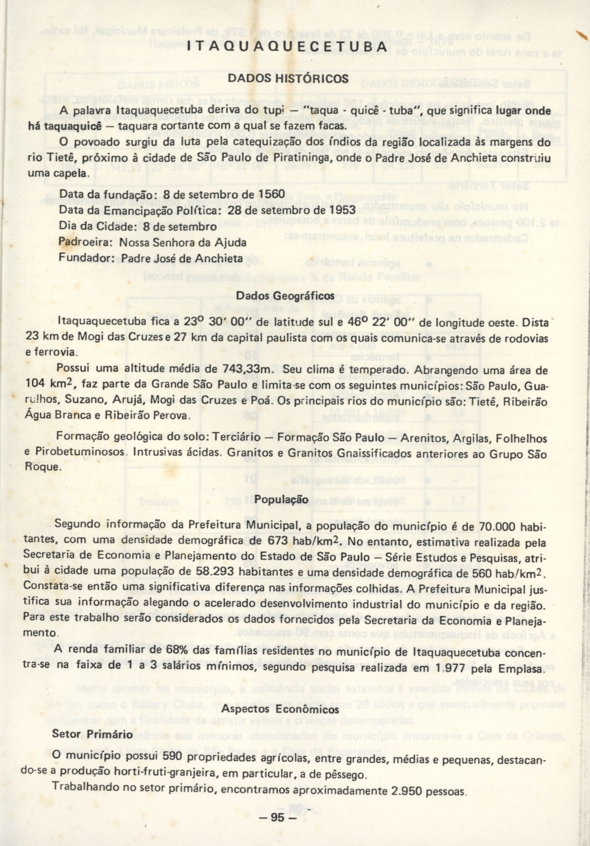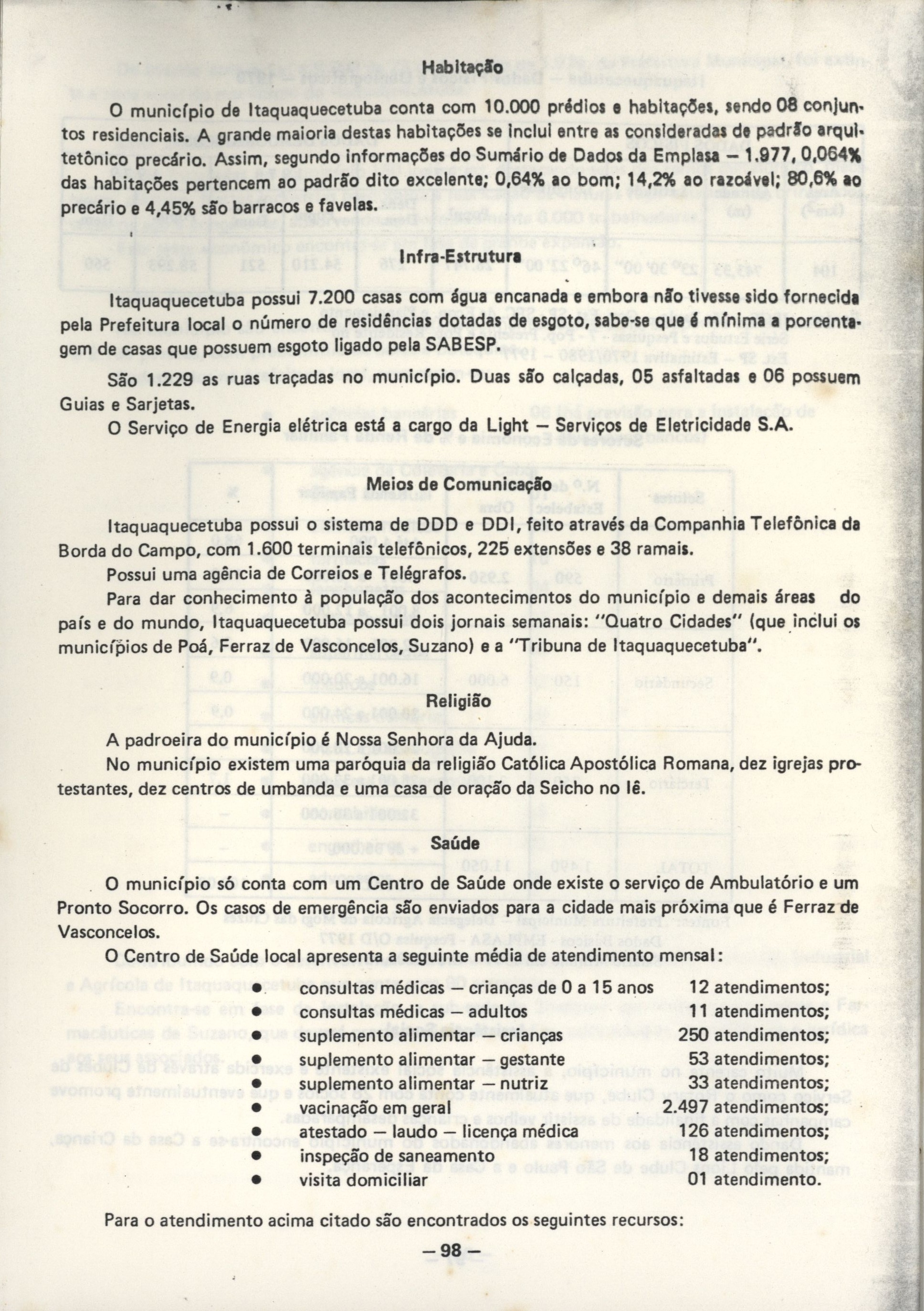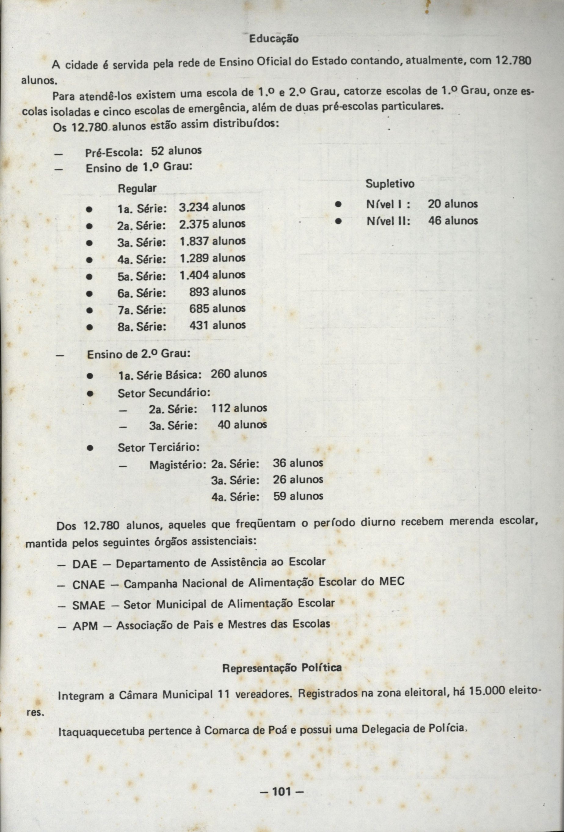Esta cartilha foi encontrada no Arquivo Morto da Câmara Municipal de Itaquaquecetuba. Em 8 páginas há informações sobre a cidade no ano de 1978 e 1979. Há curiosidades como o fato de Itaquá ter apenas 70 mil habitantes naquela época, ser um município com destaque para a produção de pêssego, ter apenas cinco ruas asfaltadas, somente dois jornais e ter o Instituto Modelo de Itaquaquecetuba, que segundo o documento era um hospital para "doentes mentais em estado agudo e crônico, que ficavam lá até o final da vida e que o hospital vivia a margem da sociedade, em total esquecimento". Naquele ano, a Câmara tinha apenas 11 vereadores. A cartilha parece ser um estudo para a Rede de Ensino da Região do Alto Tietê.