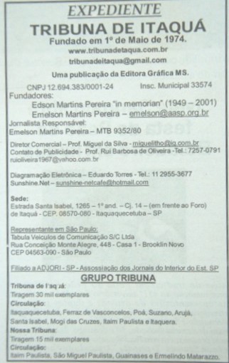 O jornal Tribuna de Itaquá foi fundado em 1 de maio de 1974 por Edson Martins Pereira e Emelson Martins Pereira. Tinha uma tiragem média de 30 mil exemplares e circulava por Itaquaquecetuba, Ferraz de Vasconcelos, Poá, Suzano, Arujá, Santa Isabel, Mogi das Cruzes, Itaim Paulista e Itaquera.